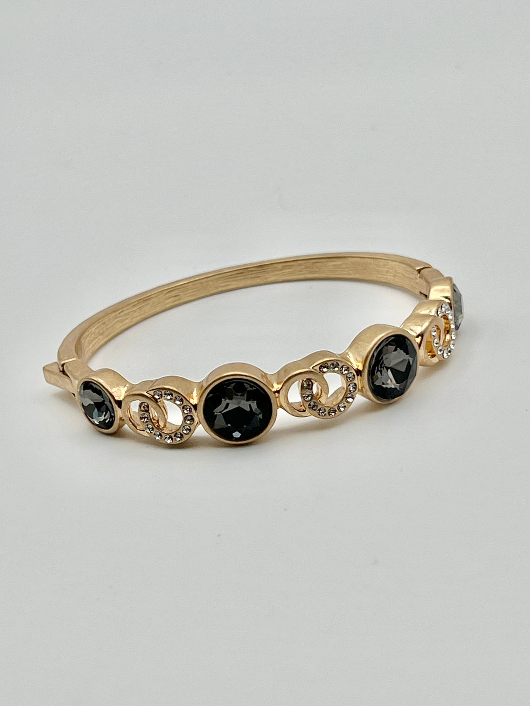 24/7 Wear Vintage Gold Bangle with Inlaid Crystals or Pearls
